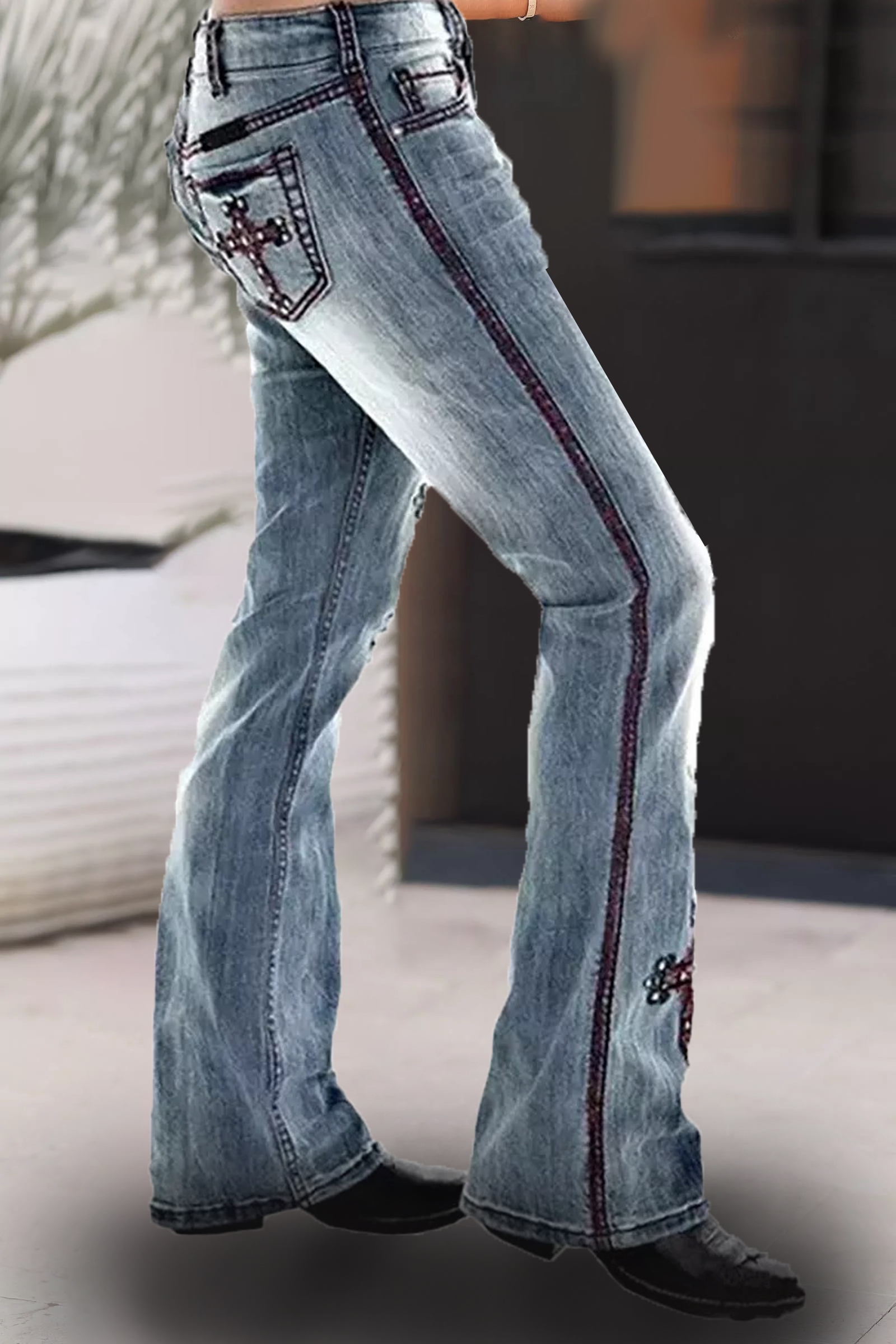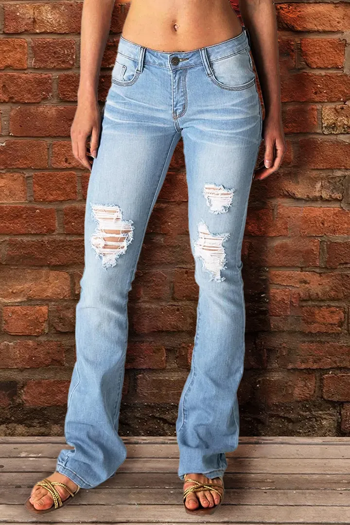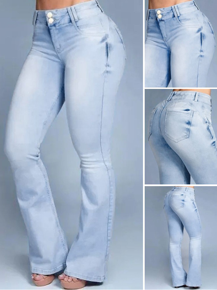 - Stylish, stretchy jeans with a snug fit on the hips and thighs, with curved stitching in the back pockets to perfectly shape the curves, soft and stretchy denim fabric that maintains the shape of your flared jeans all day. Easy to wear, the high waist accentuates the flattering figure while creating a slimmer,more streamlined look.
