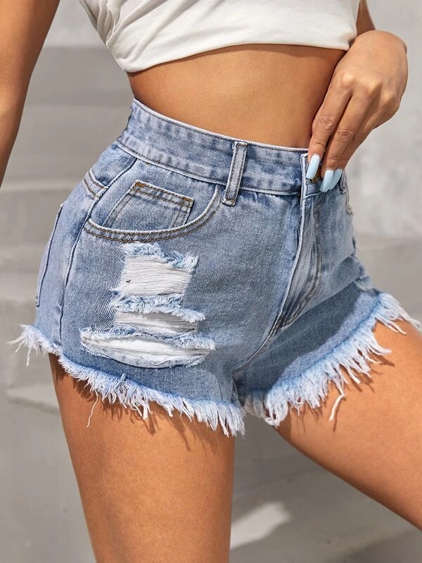 - Denim Shorts Mid Rise Ripped Frayed Summer Hot Shorts Comfy and Soft