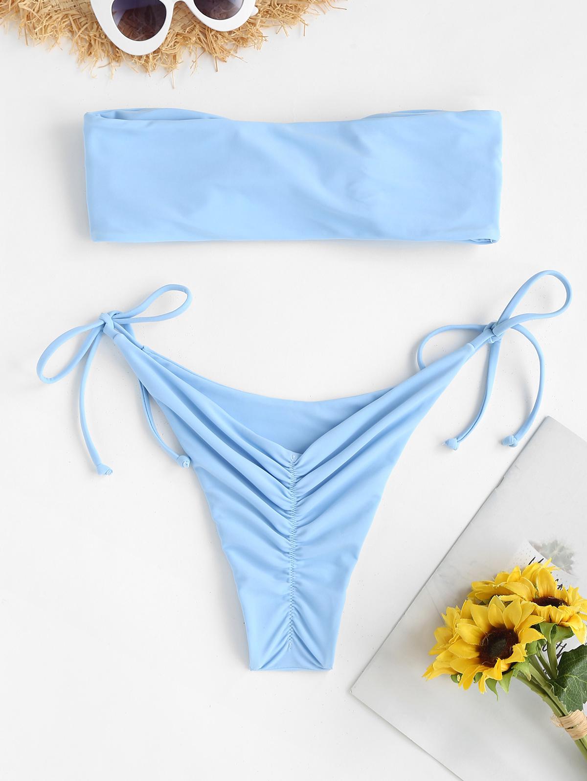 Tie Side Scrunch Butt Bandeau Bikini Set