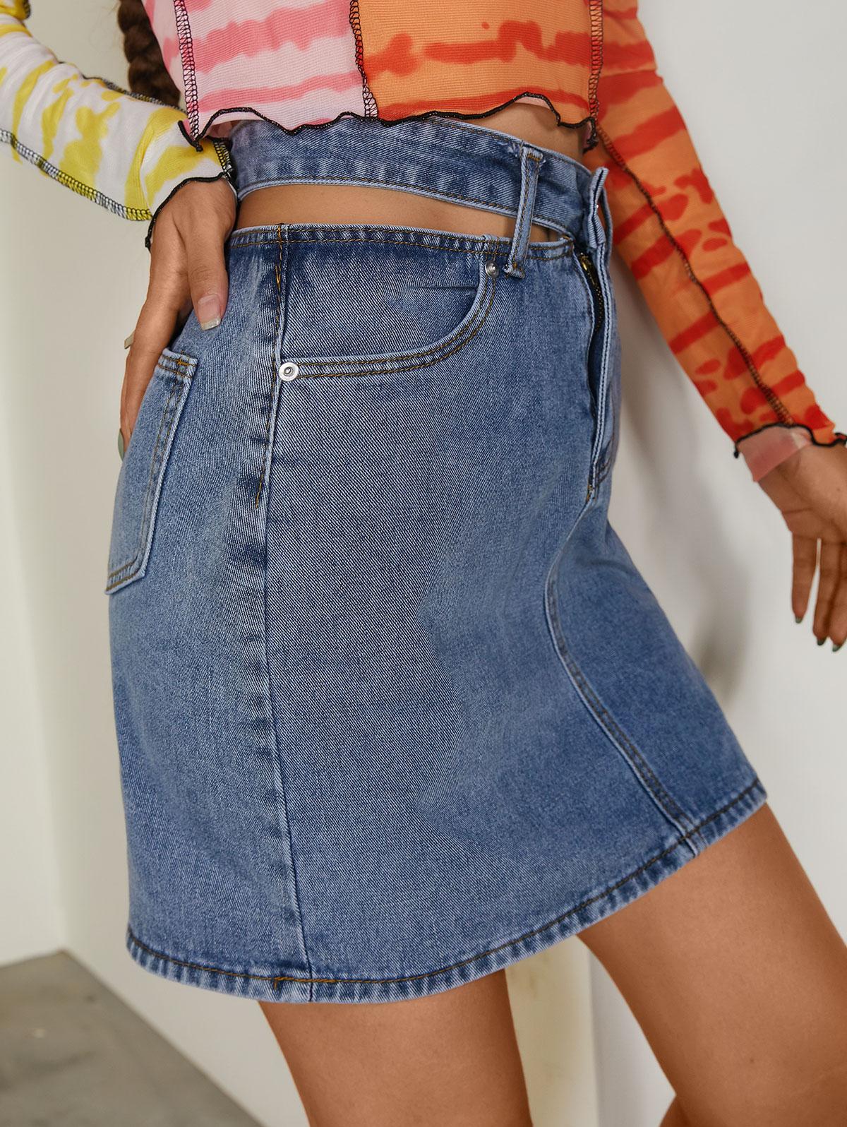 Cut Out Waist Denim Pelmet Skirt