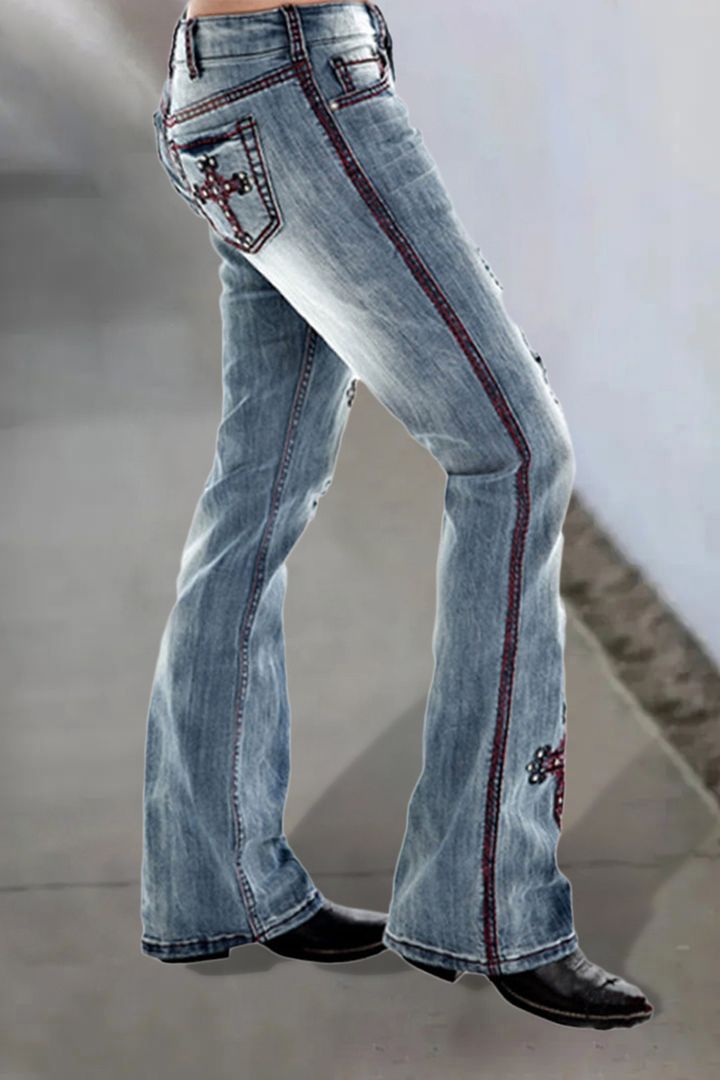 🔥HOT SALE🔥Ripped Embroidery Low Waist Bootcut Jeans
