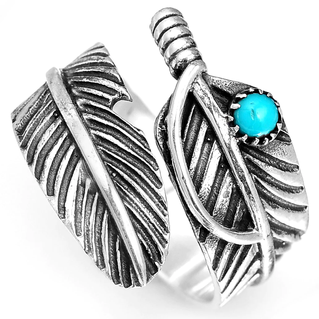 Feather Ring with Turquoise Stone Sterling Silver