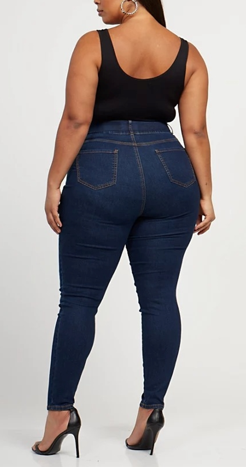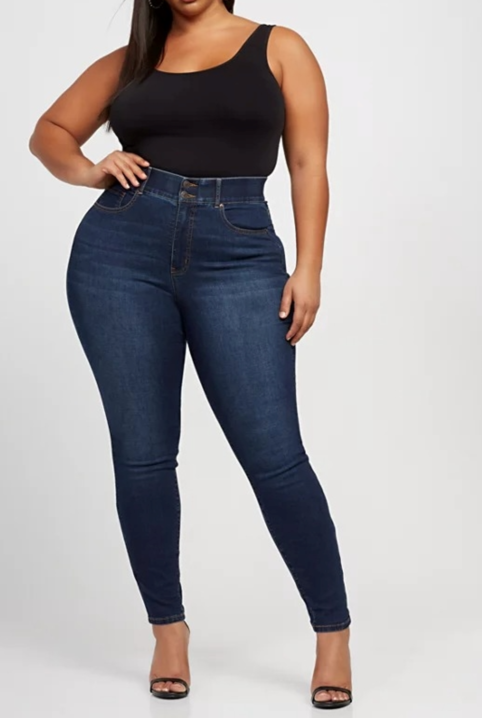 Plus Size Washed High Waist Button Up Skinny Jeans, Women's Plus High Stretch Skinny Jeans Women