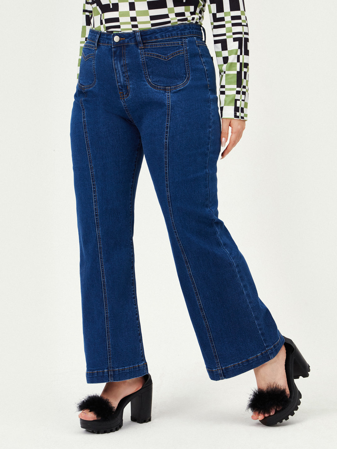 Plus Size High Waist Button Fly Flared Leg Jeans, Women's Plus Casual Solid Flared Leg Jeans