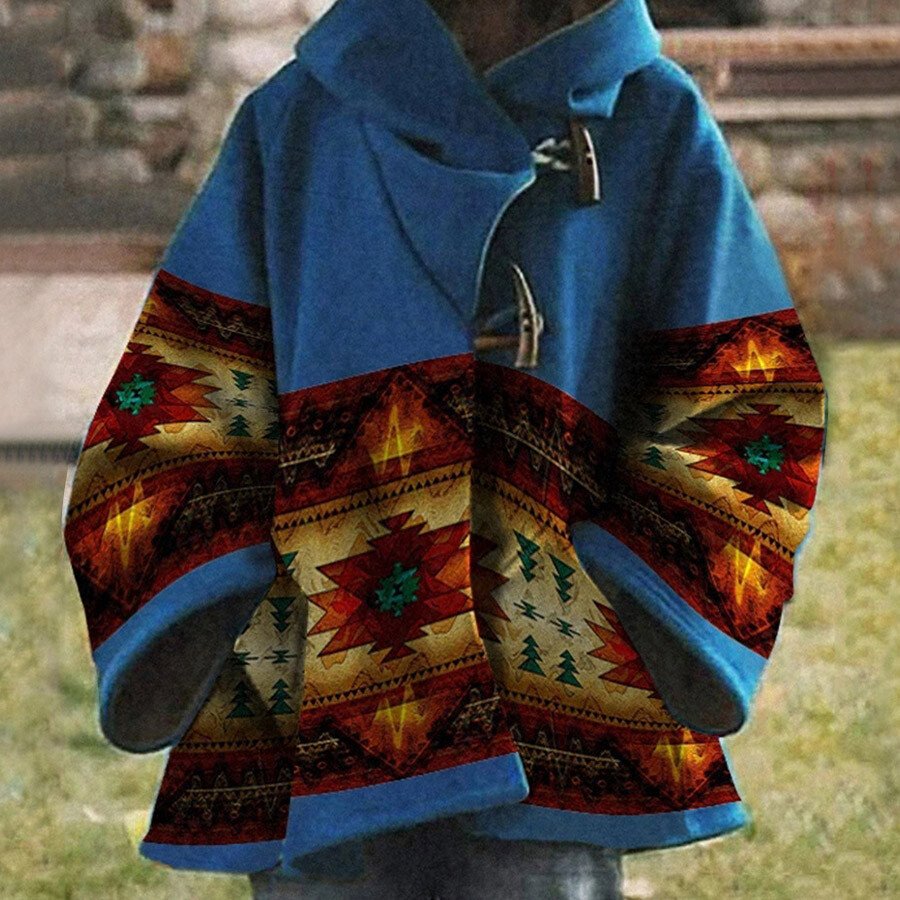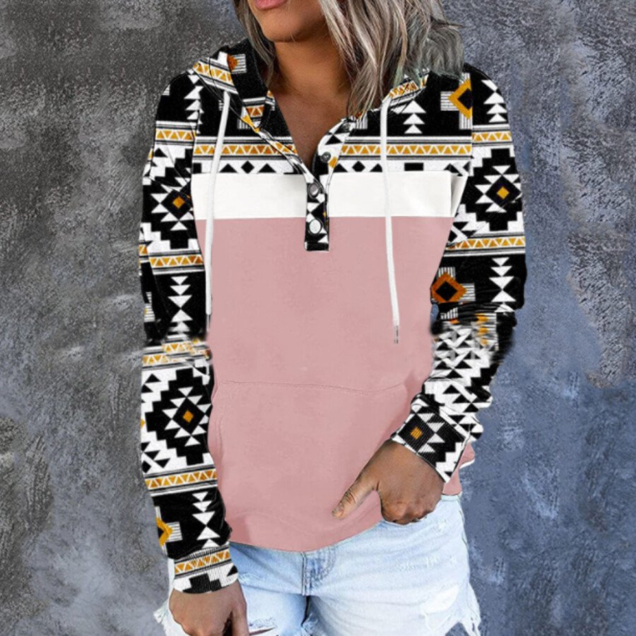 Ladies Western Ethnic Print Hooded Sweatshirt
