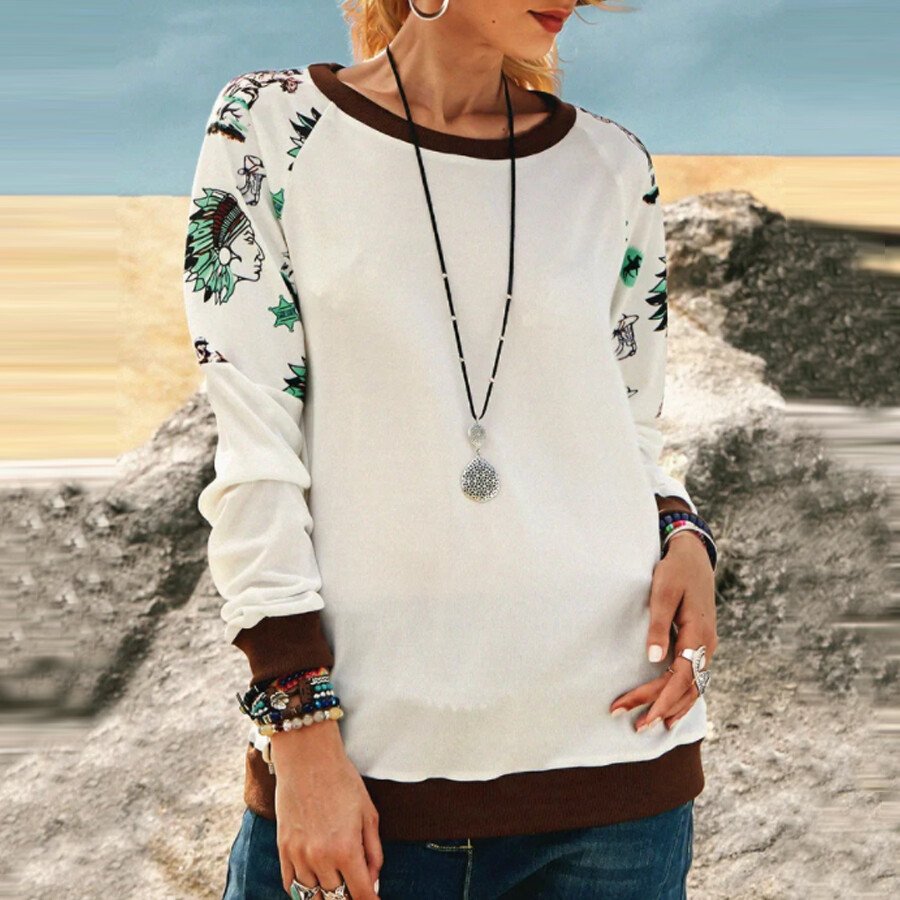 Ladies Western Ethnic Print Patchwork Sweatshirt