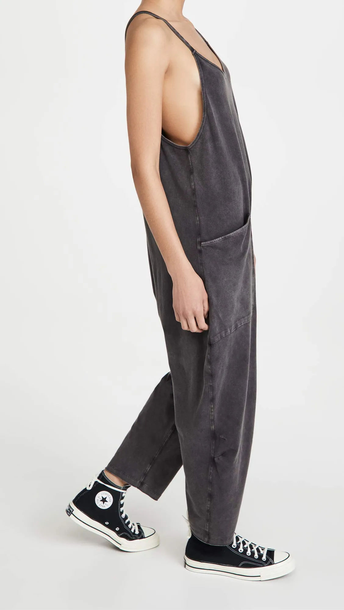 - A perfect match for light workout days, or for layering on post-sweat sesh, this soft and comfy onesie features a slouchy, relaxed-fitting design with a dropped crotch and convenient side pockets.