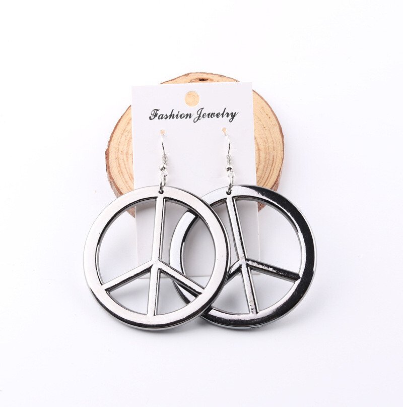 Hippie Peace Charm Earrings and Necklace 2-Piece Set