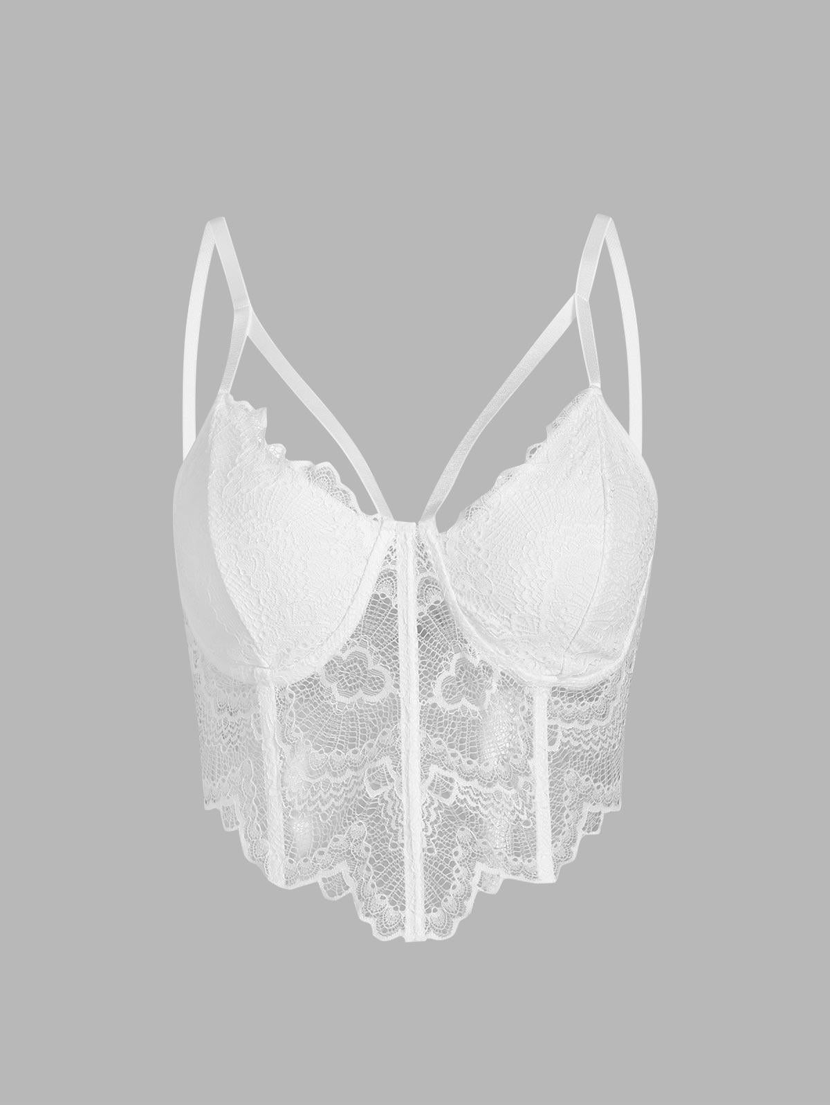 Bring the heat to your lingerie wardrobe with this bra which features a feminine lace material with boned detail and a strappy design. We love this pair with PU pants and a biker jacket.
