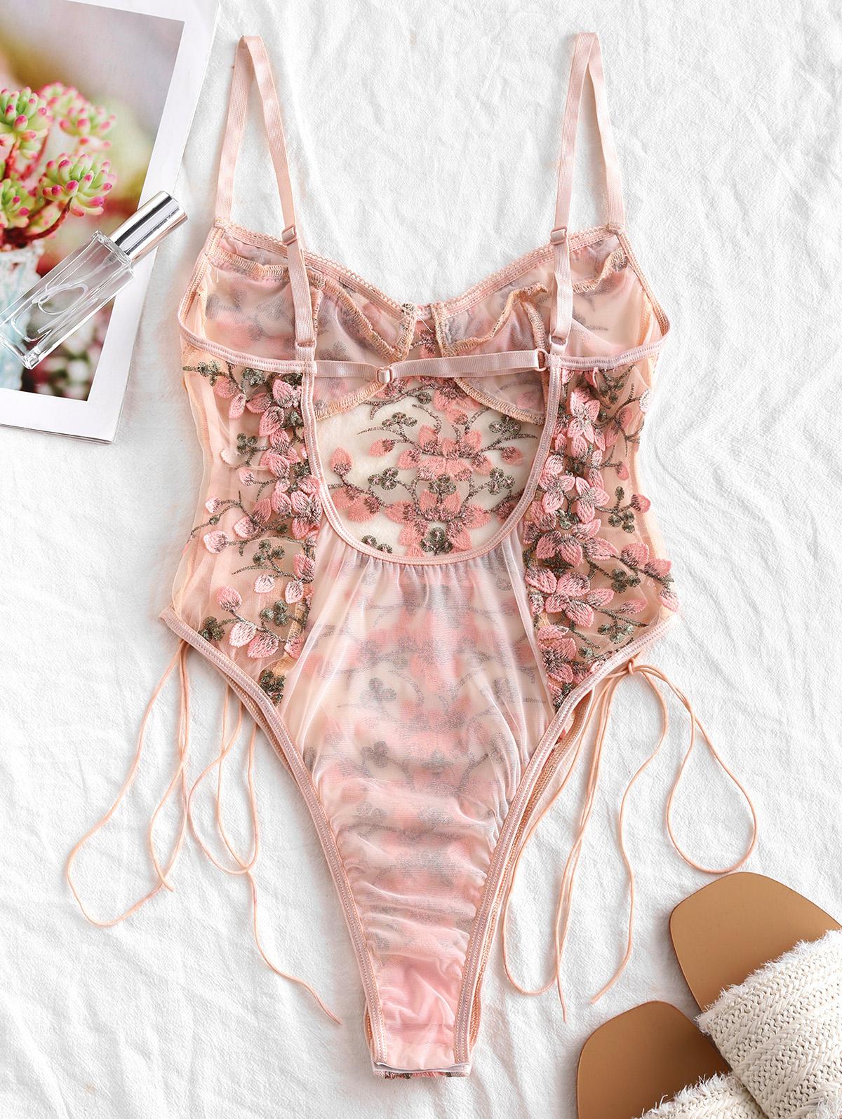 With the floral-applique design and lace-up front to make for an elevated alluring look, this lingerie teddy is the perfect choice to awaken your passion and you'll cherish the moment.