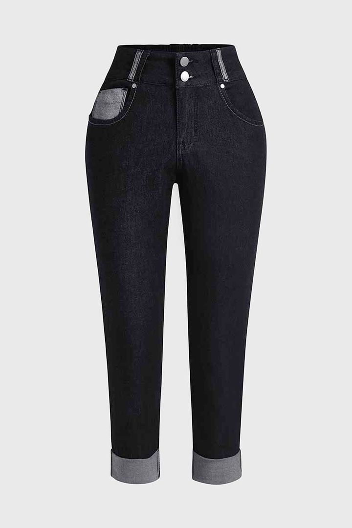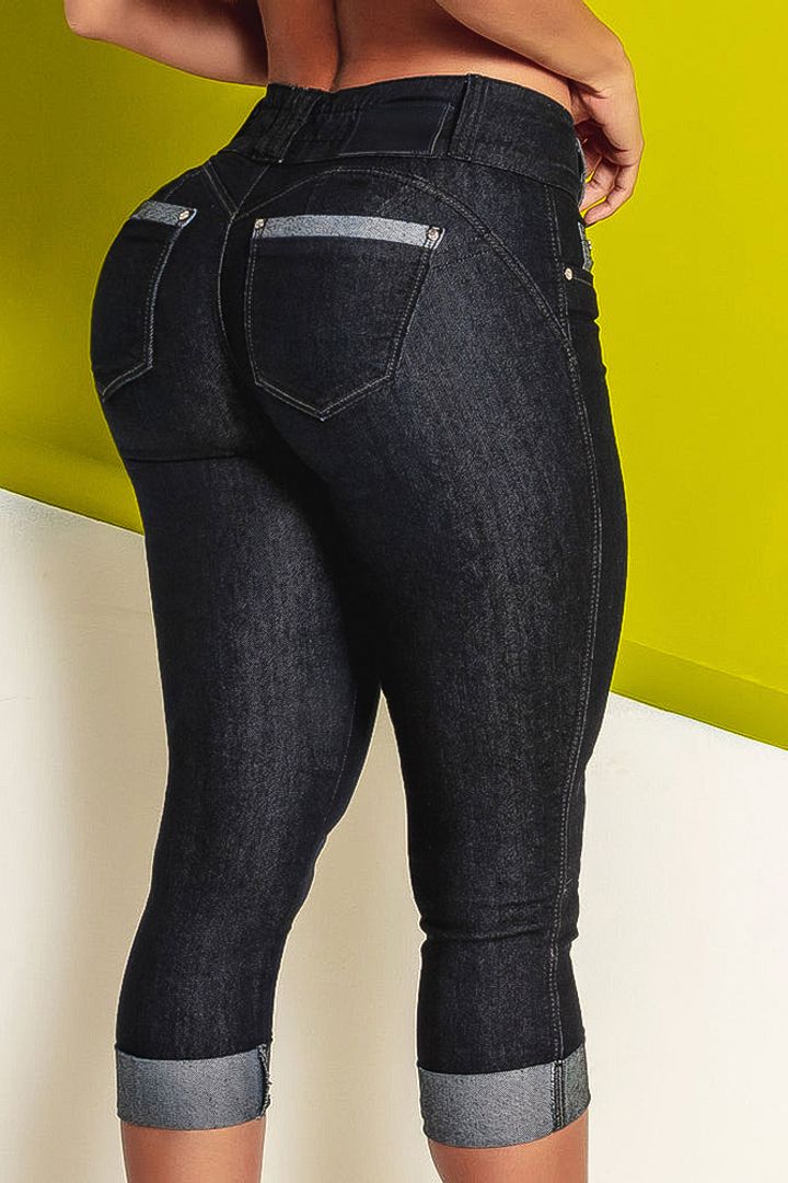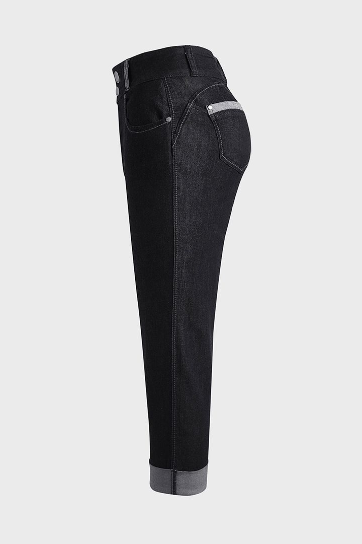 Midiross Button Fly Butt Lifting High Waist Capris Jeans