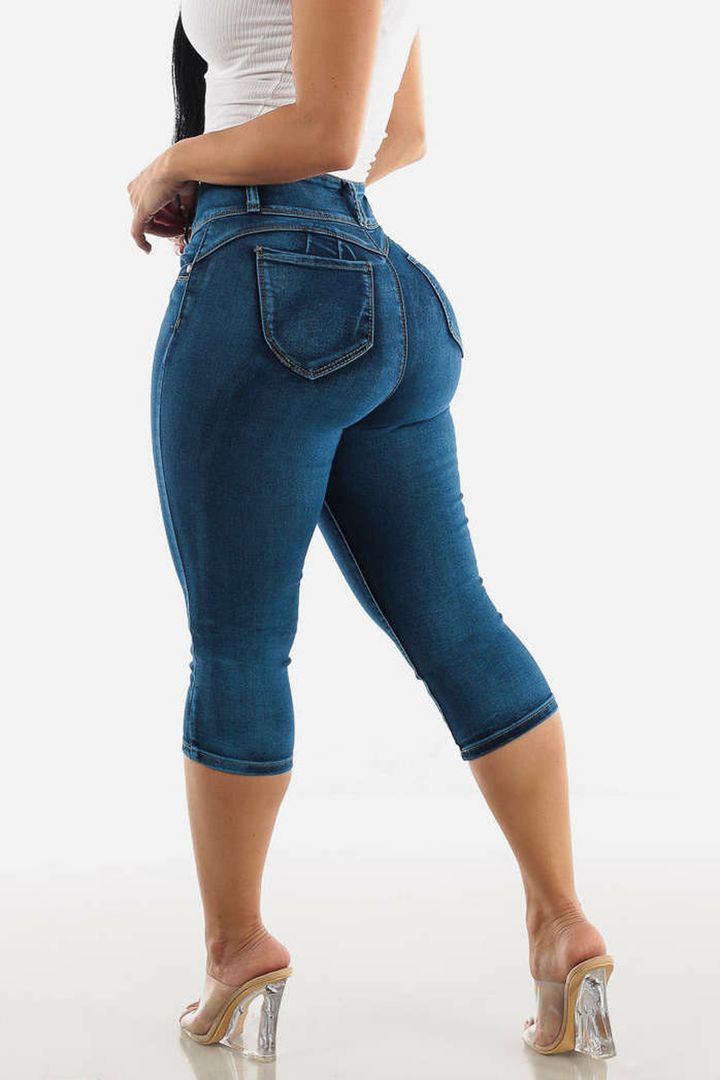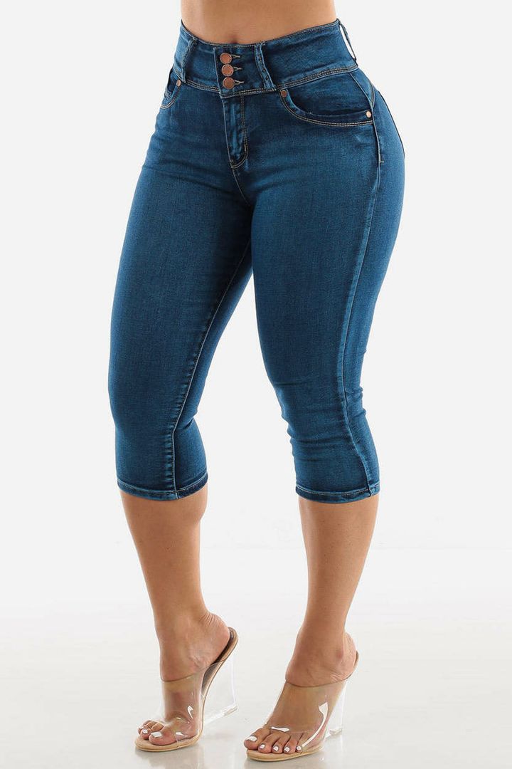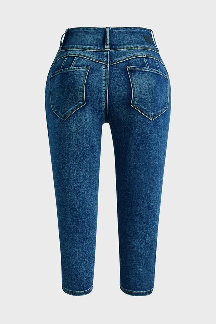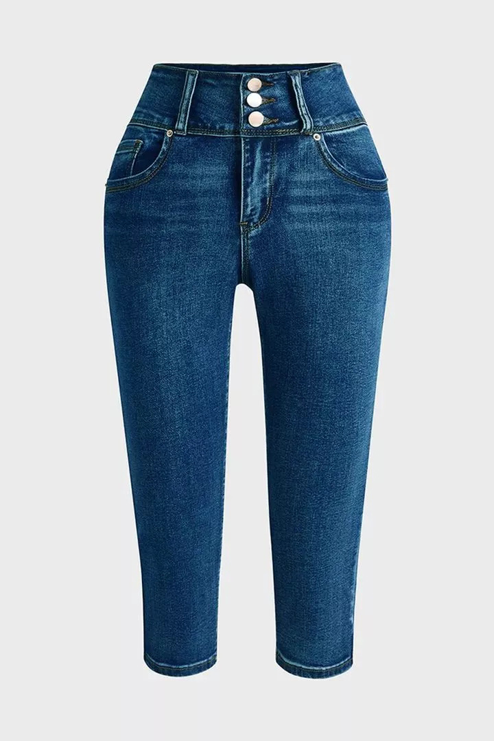 Midiross Button Fly High Waist Capris Jeans