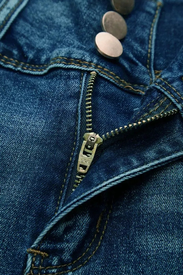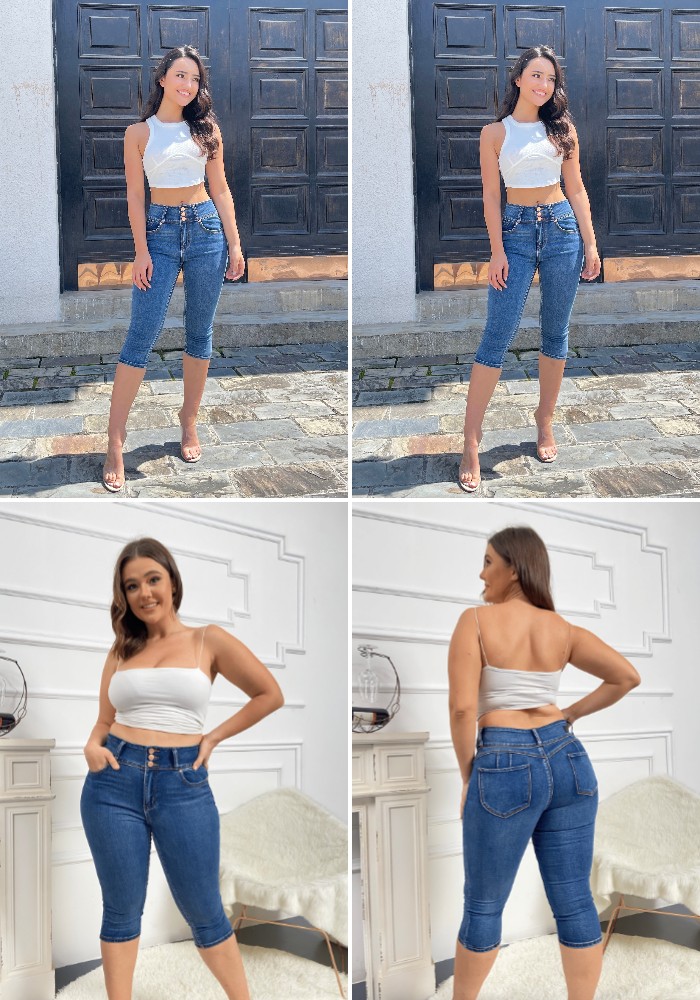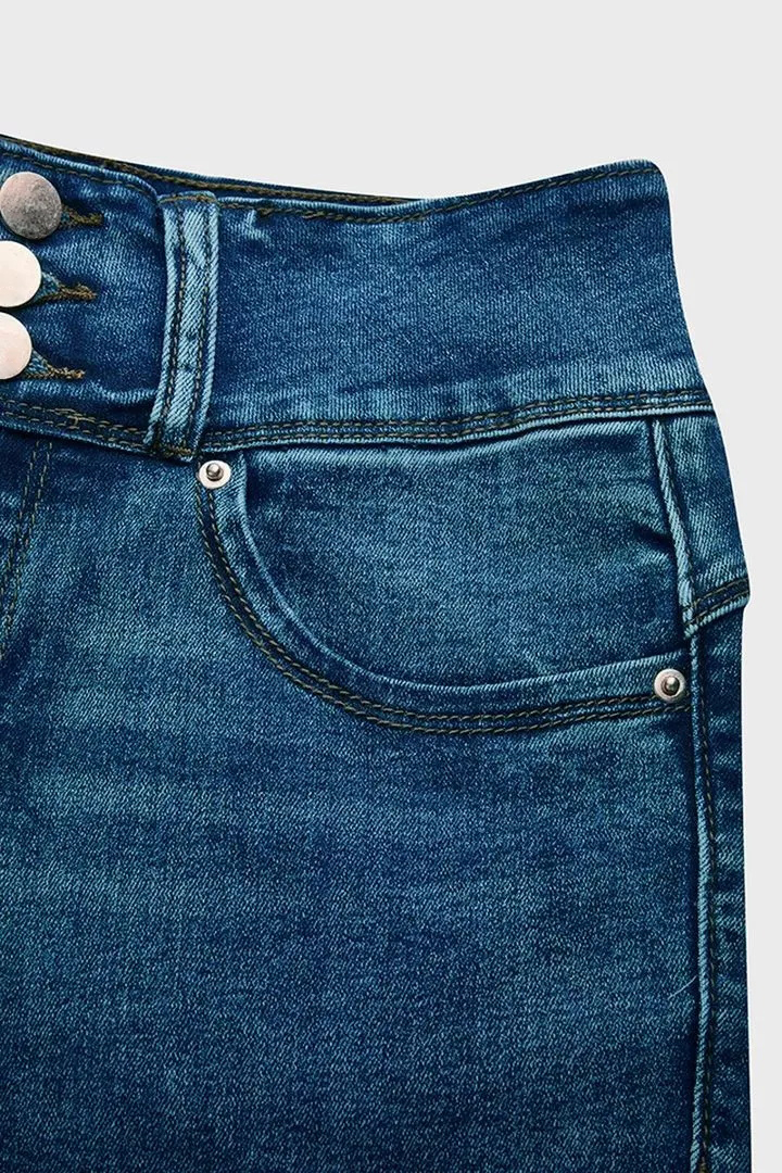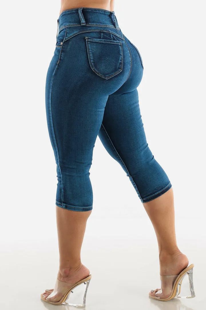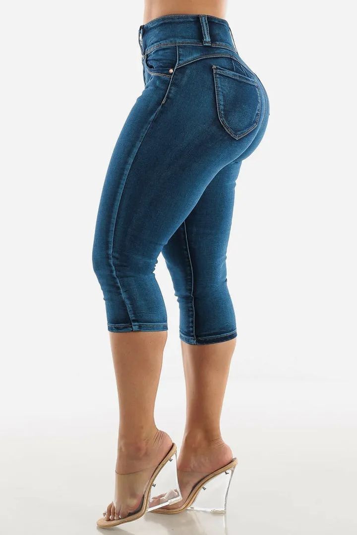 Midiross Button Fly High Waist Capris Jeans