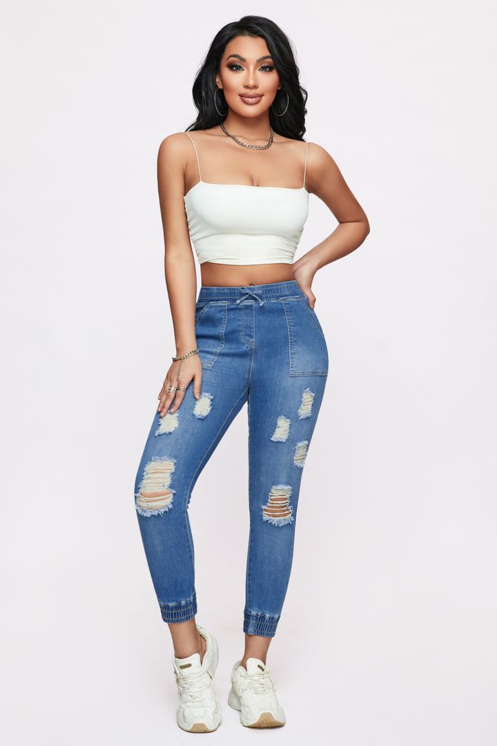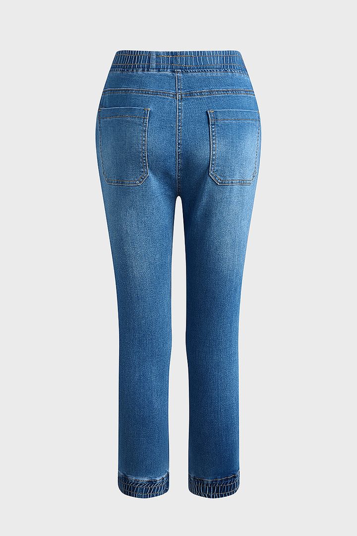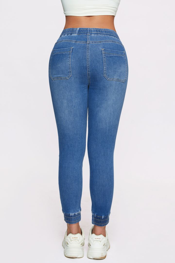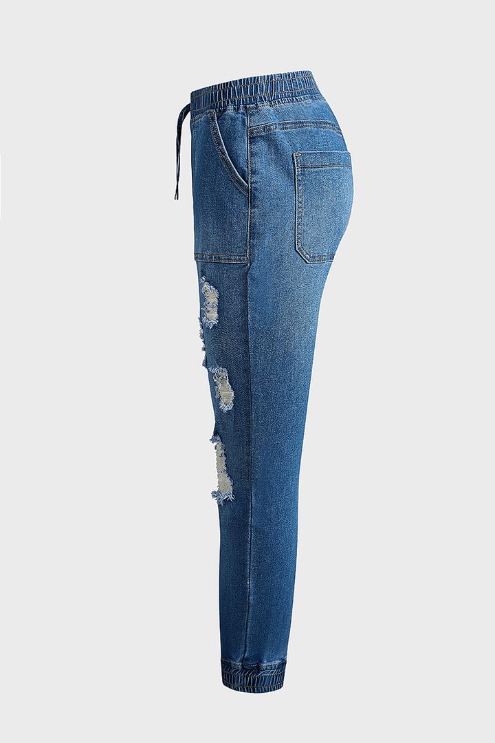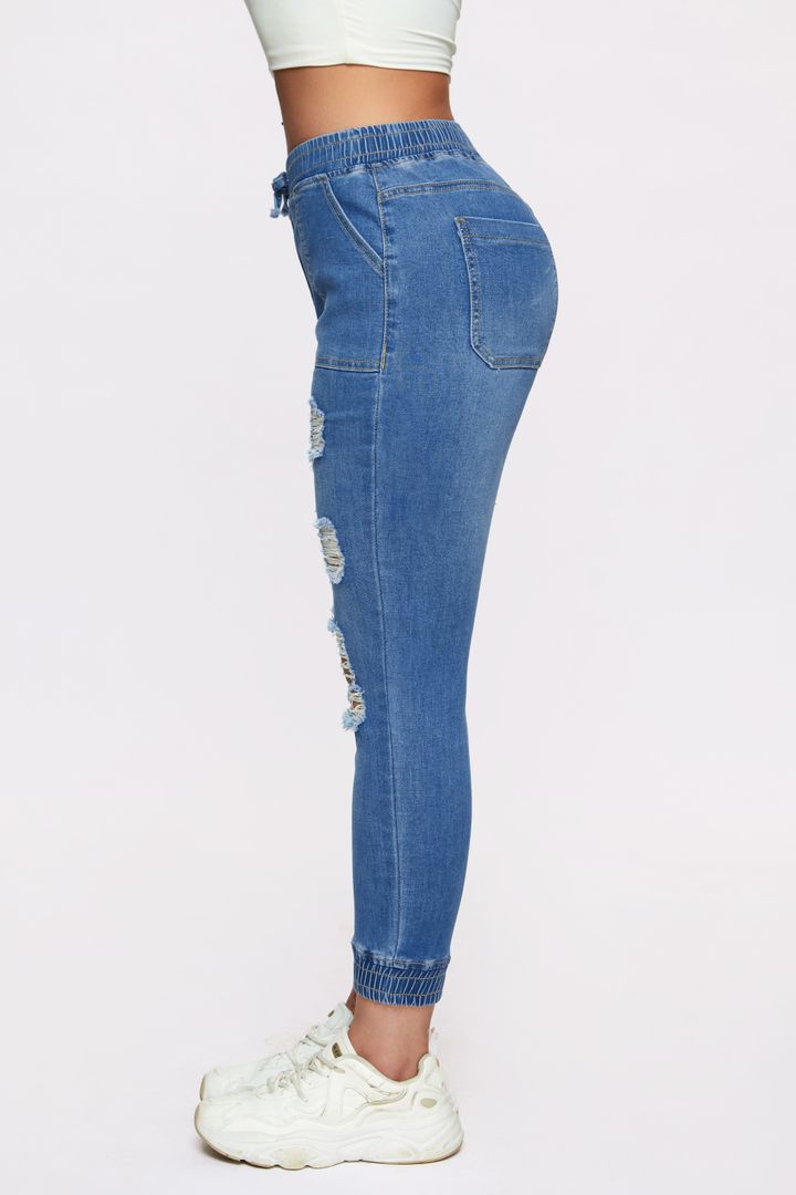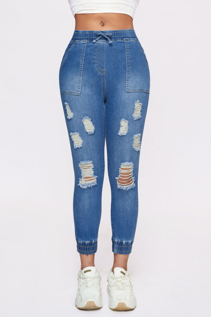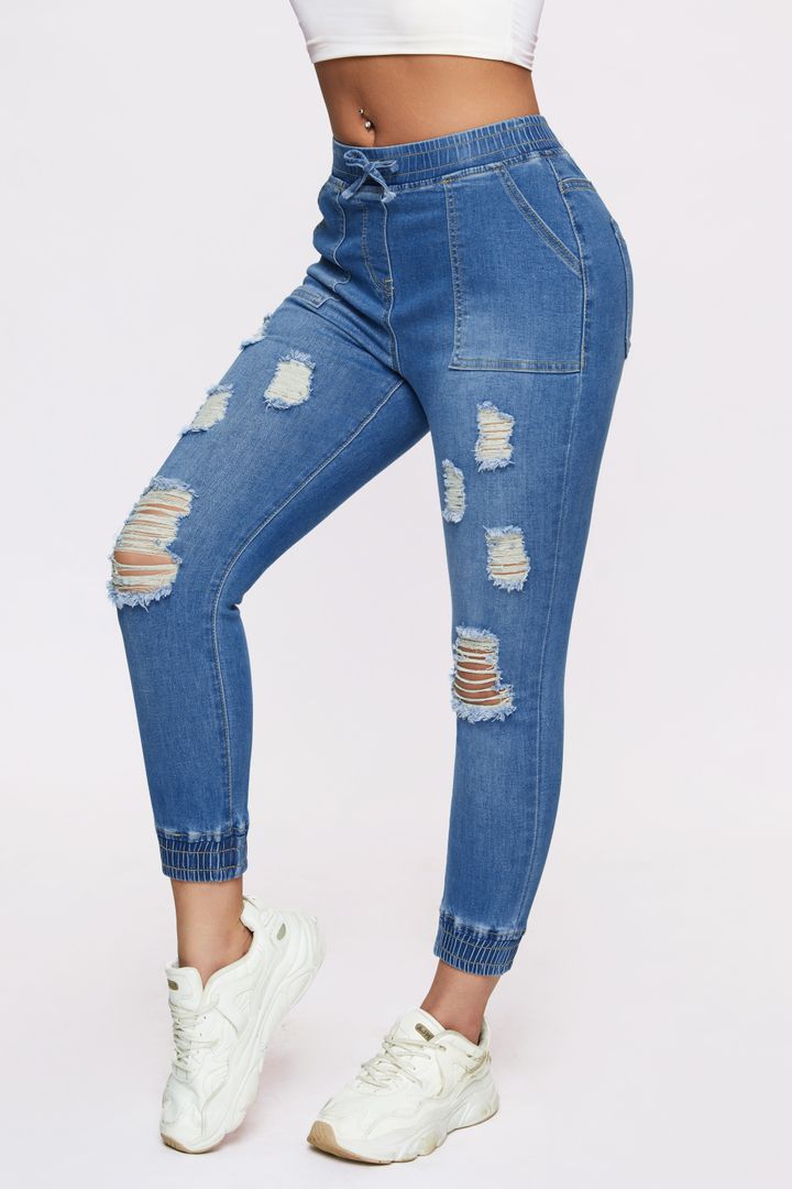 Midiross Ripped Drawstring Elastic Waist Pocket Detail Capris Jeans