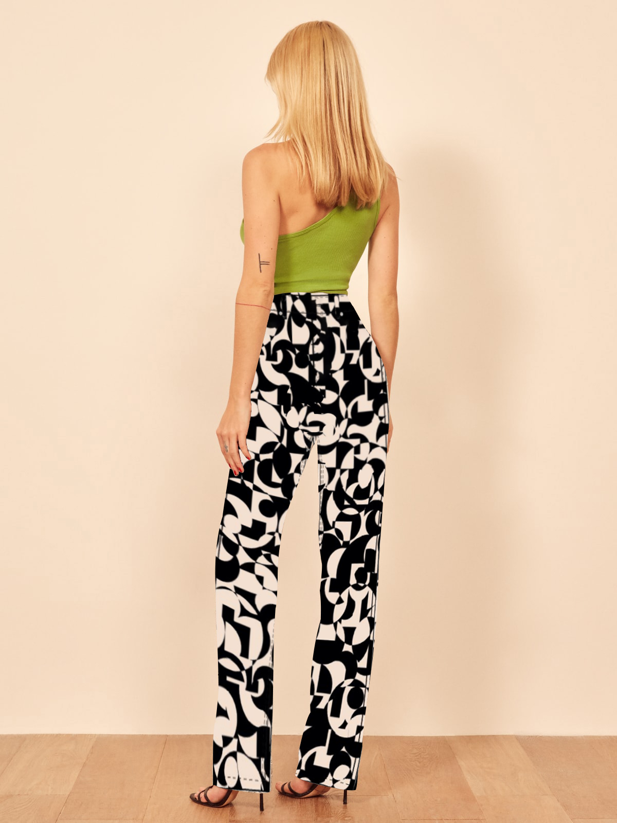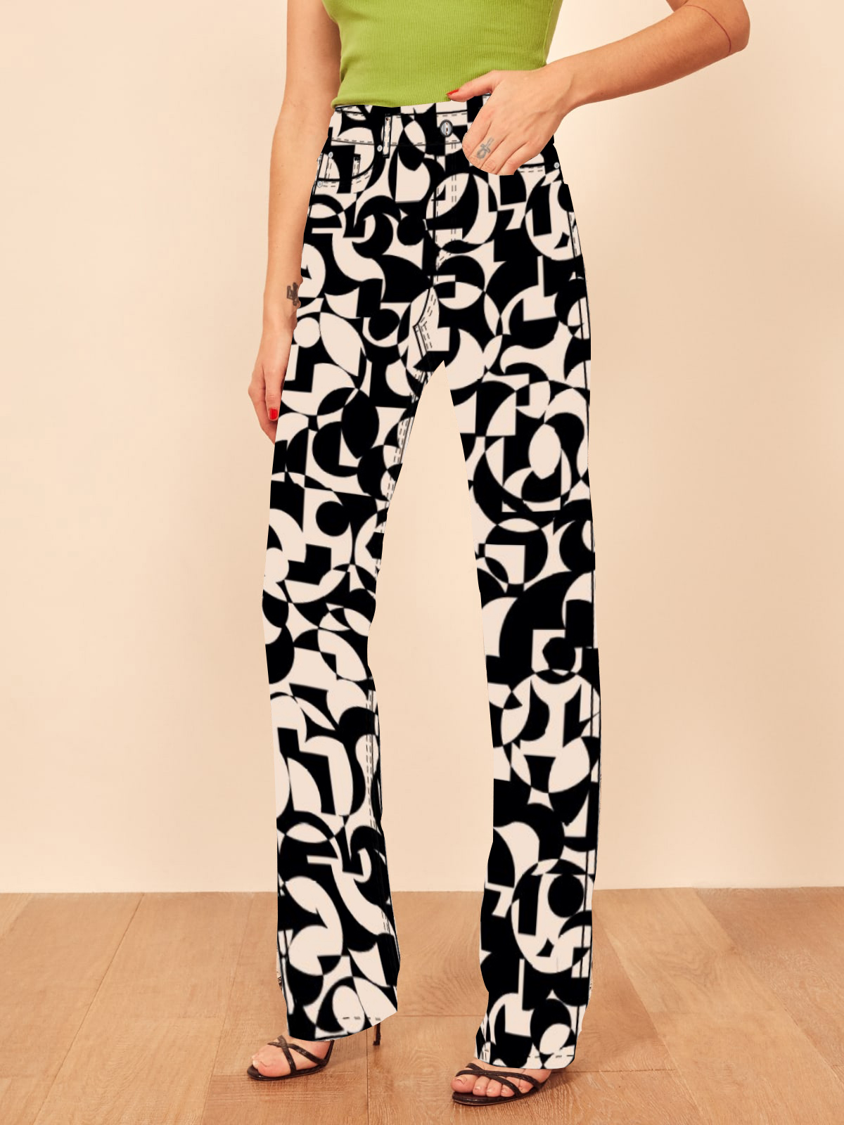 Smart ass jeans. This is a high rise jean with a graphic print, belt loops, and finished hem. The Newsprint is slim fitting through the hip and butt with a relaxed leg.