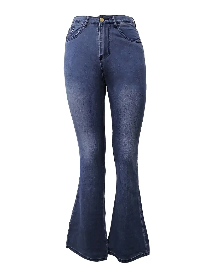 Plus Size High Waist Button Fly Flared Leg Jeans, Women's Plus Casual Solid Flared Leg Jeans