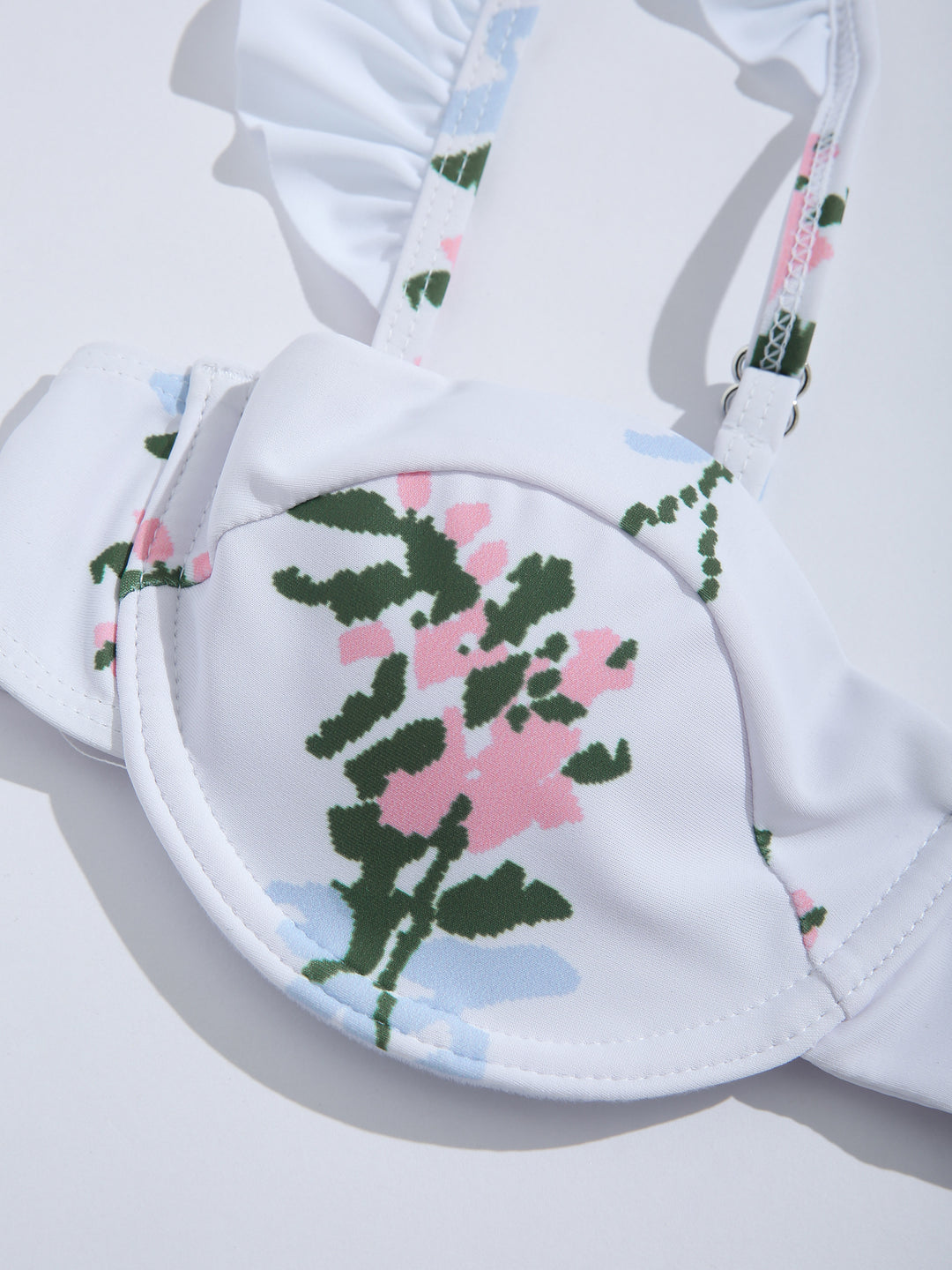 SwimwearModerateRuffles,Floral PatternSleevelessSpaghetti StrapsBodyconBikinisNaturalVacation,Swimming Pool,BeachRemovable PaddingMid WaistSpring,SummerPush UpComposition:85% polyester 15% spandex