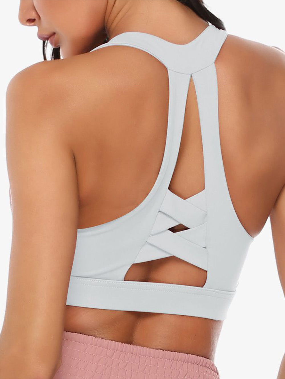 Material: 80% Nylon, 20% SpandexFabric: 4-Way StretchDetails: Criss Cross, Cut OutPattern Type: PlainChest Pad: Yes, can be removedNeckline: Straps